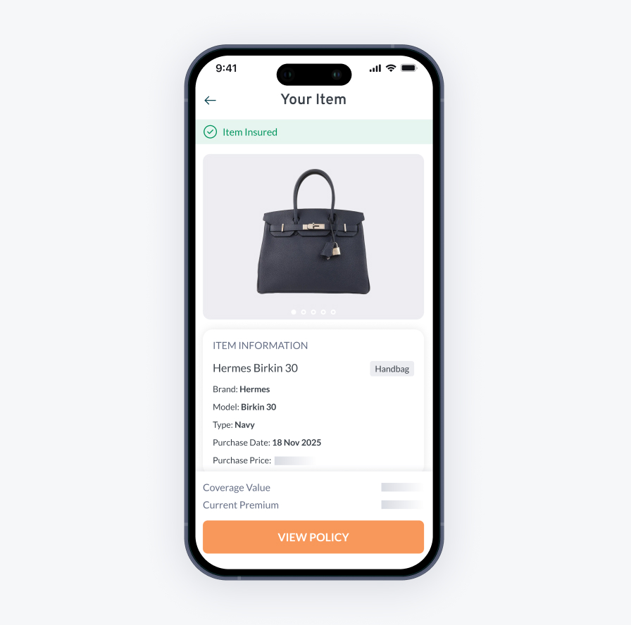 Download the KoverNow app and upload item details to get instant quotes. You will also need a receipt and/or valuation letter together with selfie(s) with the item as valid proof of ownership. Coverage kicks in right away after purchase.