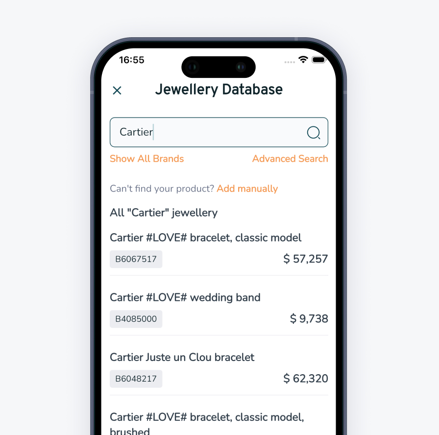 Add your items to the Vault in just a few taps. Our comprehensive database provides model references and indicative market or retail values, helping you organise your collection and prepare it for instant cover.